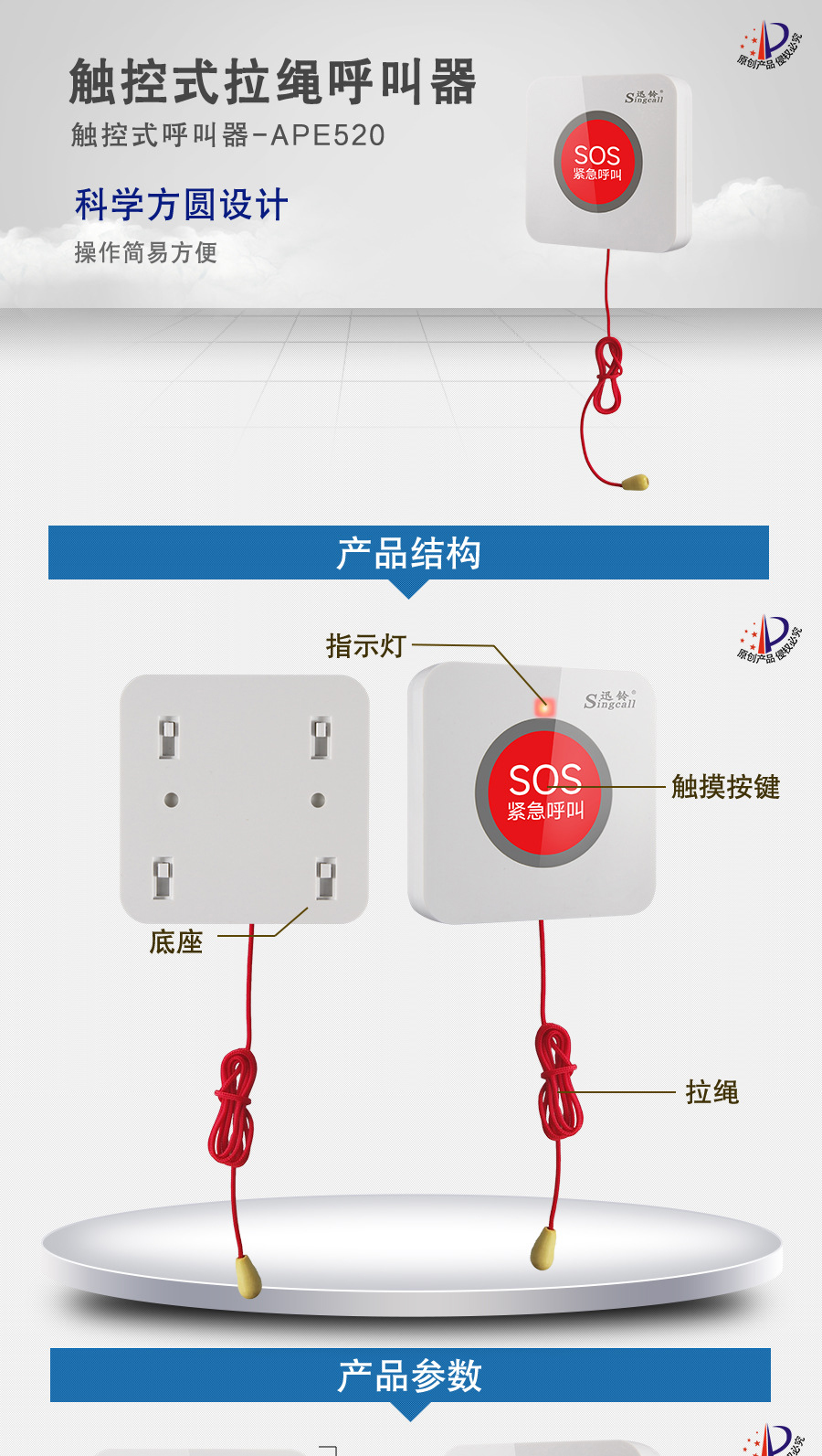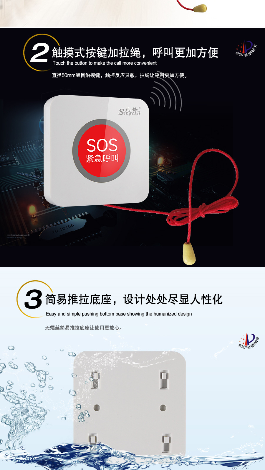 作用用途:醫(yī)院/診所等場(chǎng)所病患呼叫醫(yī)護(hù)人員的發(fā)射端