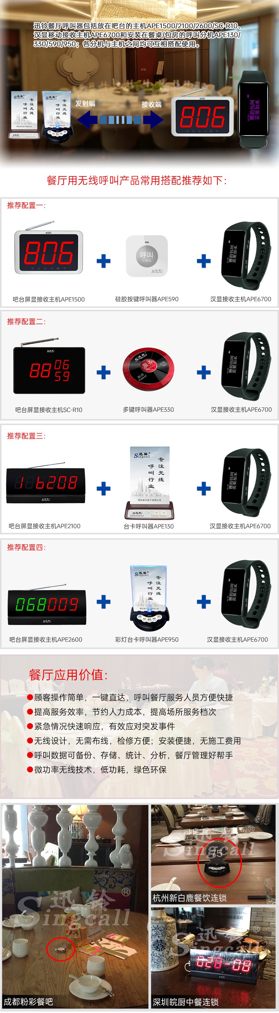 產(chǎn)品型號:產(chǎn)品組成:餐廳接收主機(接收器)+餐桌無線呼叫器分機(發(fā)射器)