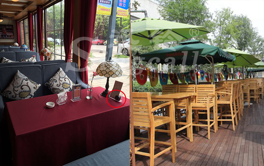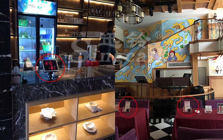 依照?qǐng)鏊覂?nèi)外的區(qū)域劃分,利用迅鈴APE1000系列主機(jī)英文字母開(kāi)頭的顯示方式,不同的區(qū)域以不同的英文字母代表。把APE560漢堡呼叫器與APE60桌牌配合使用, 透明亞克力板上可根據(jù)餐吧需要放置不同的廣告宣傳。這樣一來(lái),客人不論是在室內(nèi)還是露天處,只需輕輕一按手邊的呼叫器。置于前臺(tái)的主機(jī)即可同步接收呼叫信息,準(zhǔn)確的顯示呼叫區(qū)域的桌位號(hào),服務(wù)人員就能根據(jù)語(yǔ)音提示準(zhǔn)確的到達(dá)相應(yīng)位置給予及時(shí)的服務(wù)。迅鈴無(wú)線呼叫系統(tǒng)的安裝,提高了餐吧的服務(wù)效率,節(jié)省了人力成本,也大大提升了餐吧整體的品牌形象。