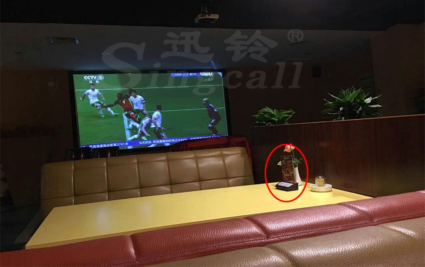 帶有廣告插板的APE730放置在每個(gè)桌位,客人如有服務(wù)需要,只需按一下手邊的呼叫器即可。“服務(wù)、結(jié)賬、取消”三個(gè)功能按鍵滿足了客人不同的服務(wù)需求,服務(wù)人員根據(jù)呼叫器的傳達(dá)信息,給予客人周到的服務(wù)體驗(yàn)。屏顯接收主機(jī)APE1000放置在服務(wù)前臺,只要客人按下呼叫器,主機(jī)就可以同步接收呼叫信息,以語音播報(bào)或是音樂的方式提示呼叫的桌位號,提醒服務(wù)人員前去相應(yīng)的桌位提供服務(wù)。迅鈴無線呼叫系統(tǒng)的應(yīng)用,給客人提供了更全面的服務(wù),進(jìn)一步提升了名樹牛扒之家的服務(wù)檔次,讓客人在這個(gè)火熱的夏天享受到另一種熱情。迅鈴,與您一起開啟歐洲杯狂歡夜!