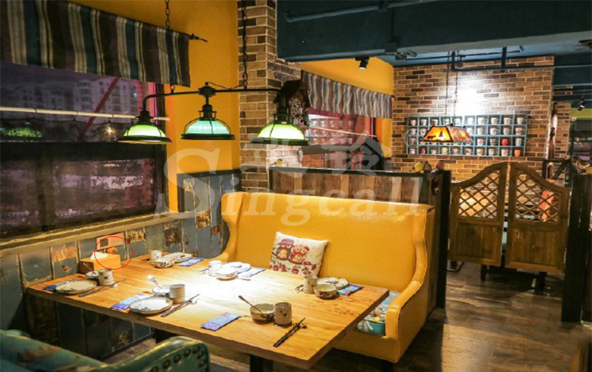 木色的APE560漢堡呼叫器配合原木色的裝修風(fēng)格,精致優(yōu)雅而又落落大方??腿擞行枰獣r(shí),只要按下桌邊的呼叫器,放于前臺(tái)的APE1200就可以同步接收到呼叫信息,并顯示呼叫桌號(hào),以音樂或者語音報(bào)號(hào)的方式給予提醒,服務(wù)人員通過提示及時(shí)前去提供相應(yīng)服務(wù)。迅鈴無線呼叫系統(tǒng)的應(yīng)用,增加了服務(wù)效率,節(jié)省了人力成本,使得整個(gè)服務(wù)過程有條不紊,讓客人更加享受整個(gè)用餐過程。