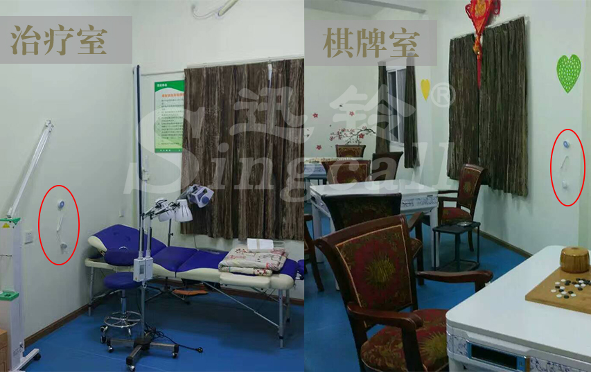 迅鈴在澤安養(yǎng)老服務(wù)中心的臥室、休息室、棋牌室,都安裝了藍(lán)色的APE200手柄呼叫器,讓老人隨時(shí)可以按下呼叫器進(jìn)行呼叫。并且為了給老人提供更加全面的保護(hù),在衛(wèi)生間安裝了APE510全防水呼叫器,有效實(shí)現(xiàn)了無死角實(shí)時(shí)呼叫。不管老人在哪里進(jìn)行呼叫,只要老人按下呼叫器,放置于服務(wù)中心的SC-R15屏顯接收小主機(jī)都可以同步接收到呼叫信息,顯示呼叫位置編號(hào),并伴有音樂或者語音報(bào)號(hào),提醒醫(yī)護(hù)人員及時(shí)前往救助。