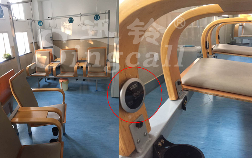 迅鈴根據(jù)醫(yī)院要求,在輸液大廳座椅把手處安裝了APE320兩鍵呼叫器,呼叫和取消兩個(gè)按鍵滿足了病患的不同需求。當(dāng)病患需要拔針、換藥或是突發(fā)意外情況時(shí),都可以按下按鍵,掛在墻壁的APE1200屏顯接收主機(jī)同步接收到呼叫信息,準(zhǔn)確顯示呼叫位置編號,并以語音播報(bào)的方式給予提醒,讓醫(yī)護(hù)人員快速找到呼叫者。避免了人聲喧嘩,醫(yī)護(hù)人員聽不到病患呼叫的情況,無形中大大改善了輸液環(huán)境,使護(hù)理管理工作更加規(guī)范,輸液就診流程更加流暢。