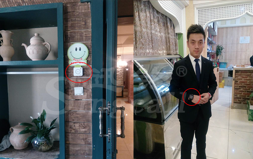 結合店內(nèi)的裝修風格,迅鈴為其推薦安裝了APE520觸控呼叫器放于門口開關處,只要顧客有需要就可以輕輕碰觸圓形觸控按鍵,佩戴于服務人員手腕的APE6800移動接收主機同步接收呼叫信息,以振動的形式給服務人員以提醒,快速前往提供相應服務。有效的信息傳遞,提高了餐館的服務效率,增加了客人的滿意度,實現(xiàn)了客人隨呼隨到的服務新模式。