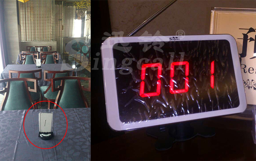 中餐廳選用的是迅鈴的APE1500系列的語音播報主機和餐飲行業(yè)專用的APE930系列的臺卡呼叫器??腿嗽诔燥埰陂g如有需求,只需輕輕一按呼叫器,服務(wù)人員便可通過主機的播報迅速知道。一呼一應(yīng),大大的提高了服務(wù)的效率。
