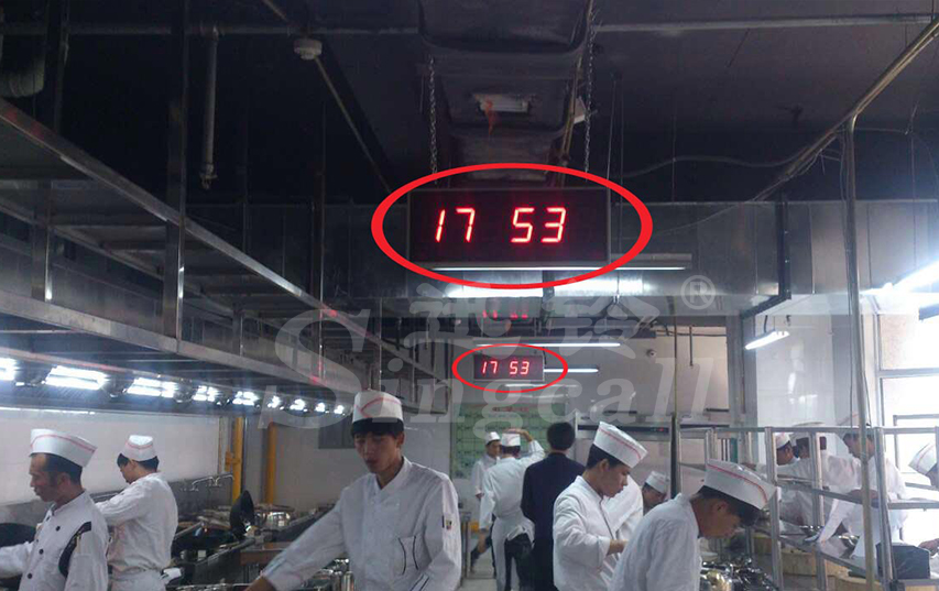 APE8000大吊屏懸掛在廚房,雙面顯示,大氣醒目,語音報號,信息一目了然。起菜,停菜快速得到信息通知。APE820遠距離無線呼叫器放置在每個包間里,服務(wù)員按照顧客的要求按下按鍵通知廚房起菜、停菜,操作簡單,大大提高了工作效率。此款呼叫器信號傳輸距離遠,信號穩(wěn)定。二層、四層、五層包間內(nèi)的APE820均可準確無誤的呼叫到三層的廚房,無需加裝任何信號中轉(zhuǎn)、放大設(shè)備。