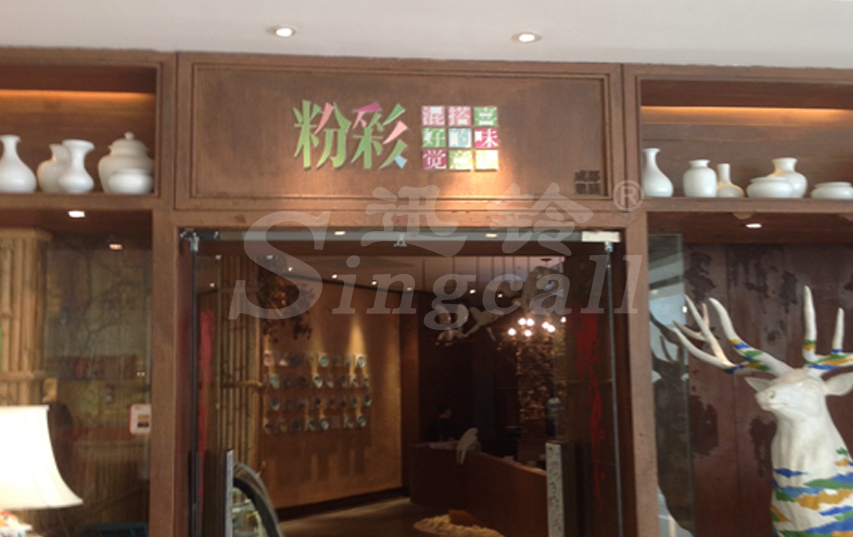 成都粉彩餐吧位于成華區(qū)雙慶路8號(hào)萬(wàn)象城4樓456號(hào)商鋪,作為一個(gè)特色的餐廳,粉彩將中國(guó)味的粉彩藝術(shù)與川菜飲食結(jié)合在一起。以古韻陶瓷館的設(shè)計(jì)裝修餐廳,使得粉彩餐廳藝術(shù)感強(qiáng)。各色粉彩瓷搭配室內(nèi)雅座,浪漫舒心的露臺(tái)使得每個(gè)走進(jìn)粉彩就餐的顧客都感覺(jué)置身藝術(shù)館。說(shuō)完設(shè)計(jì)再說(shuō)美食,“扮彩神馬路 ”,“脆皮膠原拌豬手”,“手擂茄子”等一系列招牌菜讓食客流連忘返。這樣高檔次有品位的餐廳當(dāng)然少不了迅鈴的身影。輕巧時(shí)尚的飛碟APE700搭配白色APE9000系列主機(jī)輕松的應(yīng)對(duì)粉彩高客流量時(shí)的服務(wù)難題。催餐、需飲品酒水、遇疑問(wèn)、要結(jié)賬,只需輕輕一按,服務(wù)臺(tái)馬上同步收到信息,通過(guò)主機(jī)顯示的桌位號(hào),服務(wù)員就可以馬上去服務(wù)。迅鈴無(wú)線呼叫系統(tǒng)大大提高了顧客的滿意度。