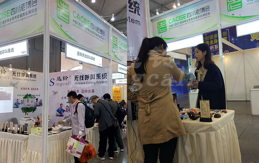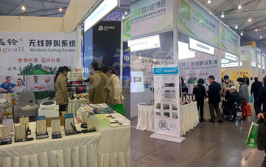 展位內(nèi)陳列著各類特色呼叫器的展臺(tái)吸引不少老人駐足。此次展會(huì)迅鈴帶來(lái)了符合老年人特性的手柄呼叫器、觸控呼叫器、掛繩呼叫器、全防水呼叫器、緊急呼叫器等無(wú)線呼叫產(chǎn)品,讓展會(huì)現(xiàn)場(chǎng)的工作人員充滿對(duì)老年人服務(wù)的使命感。成都上馳科技的負(fù)責(zé)人周經(jīng)理及相關(guān)工作人員全面展示養(yǎng)老行業(yè)專用產(chǎn)品及無(wú)線呼叫解決方案,給現(xiàn)場(chǎng)觀眾充分展示了迅鈴養(yǎng)老產(chǎn)品的功能性與實(shí)用性。