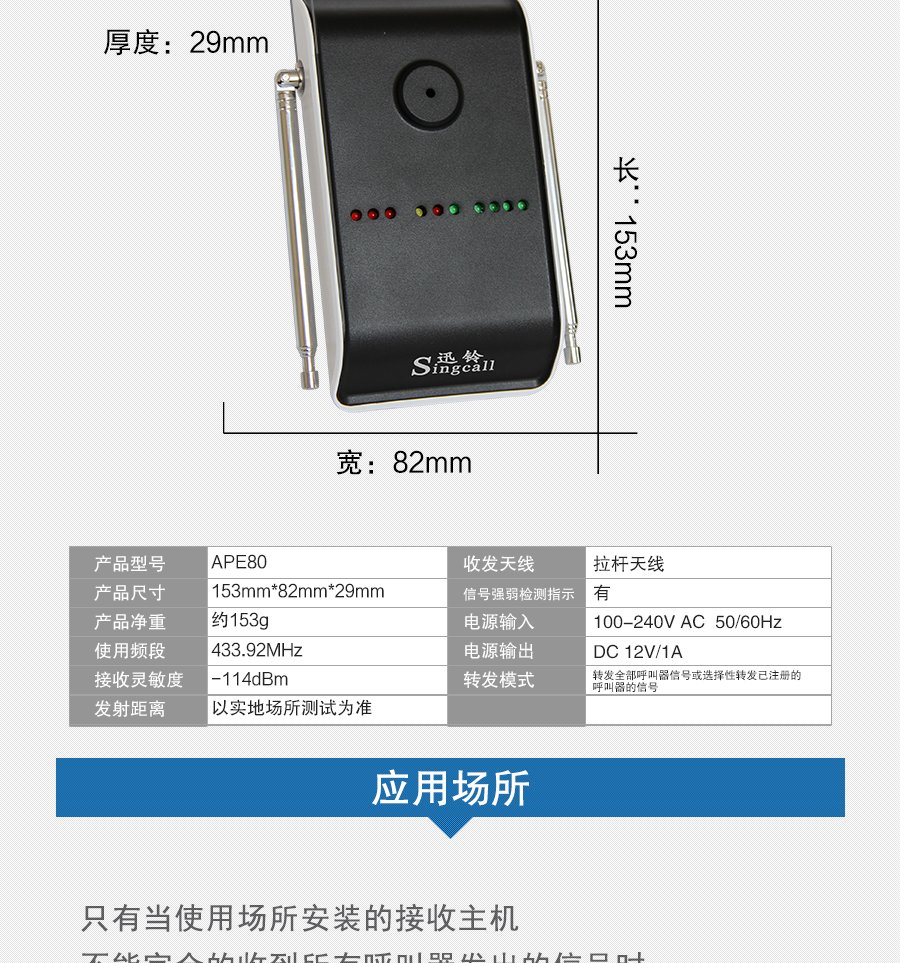 兼容性:可以跟迅鈴任意一款呼叫器搭配使用