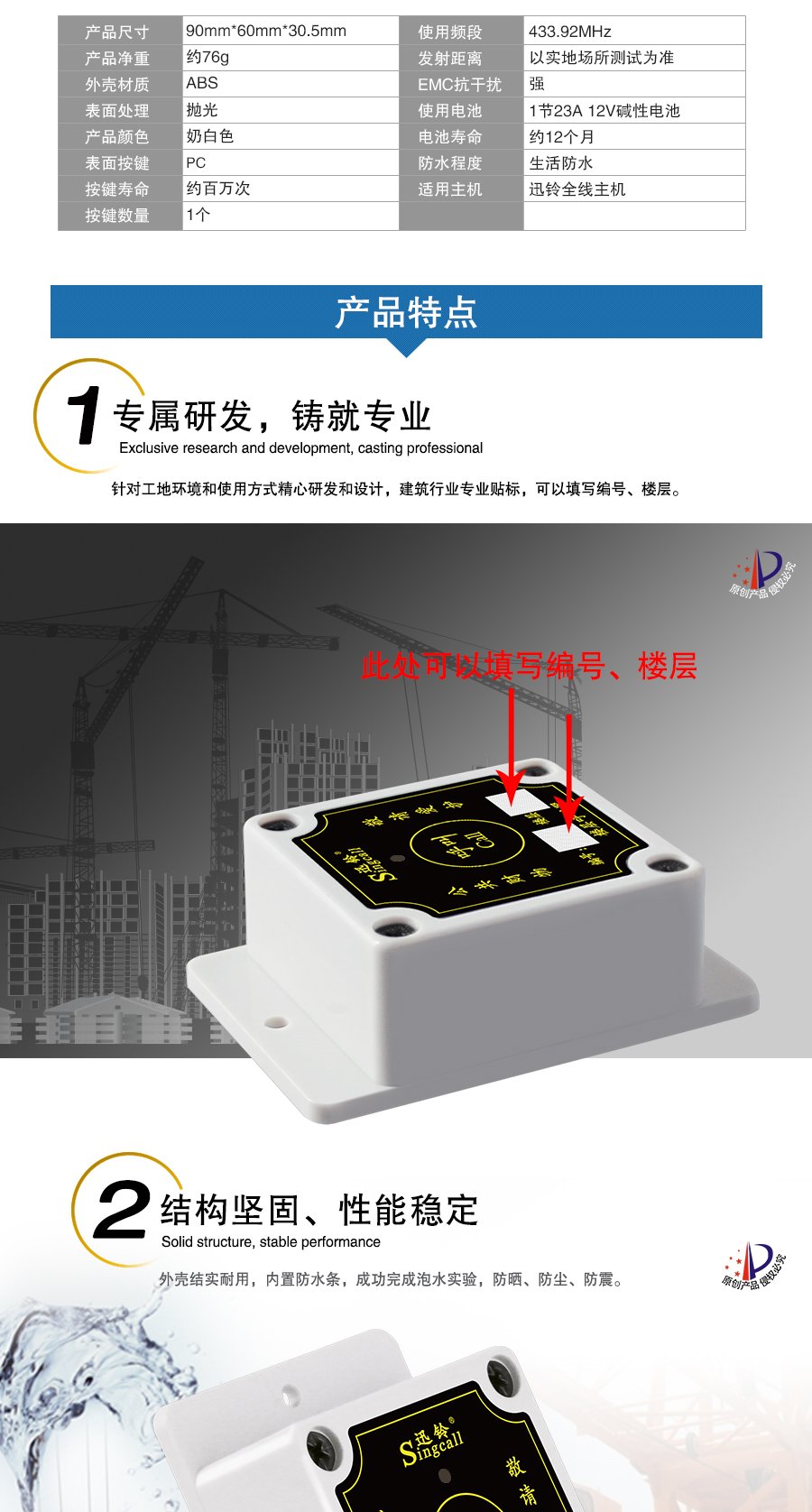 作用用途:建筑工地工人呼叫升降機的發(fā)射端