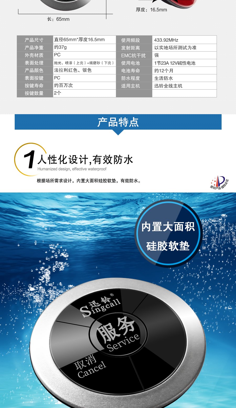 作用用途:餐廳等場所顧客呼叫服務(wù)人員的發(fā)射端