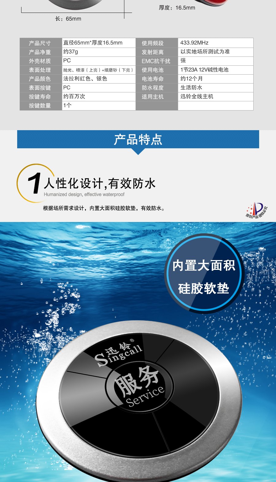 作用用途:餐廳等場所顧客呼叫服務(wù)人員的發(fā)射端