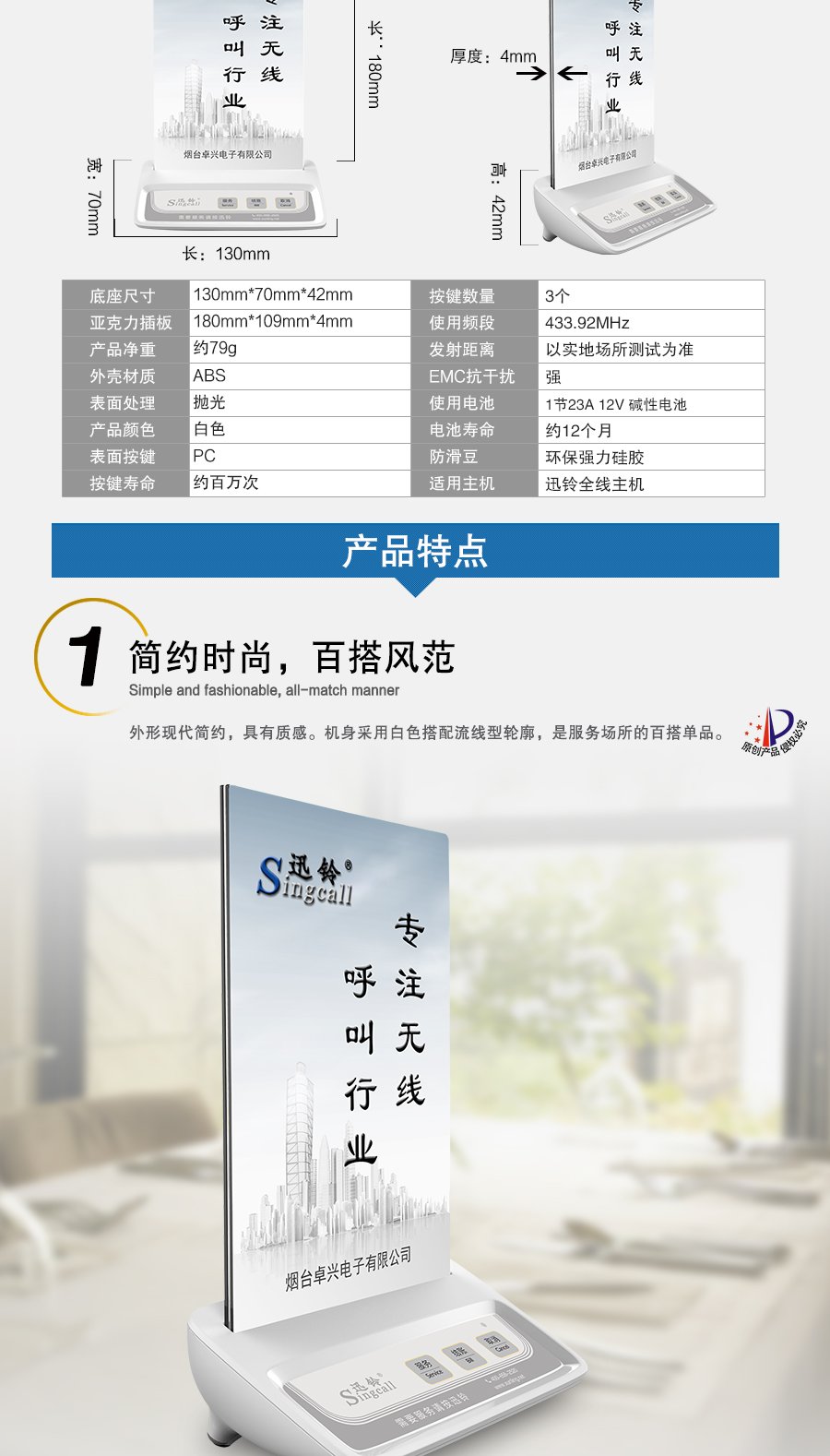 作用用途:餐廳等場(chǎng)所顧客呼叫服務(wù)人員的發(fā)射端