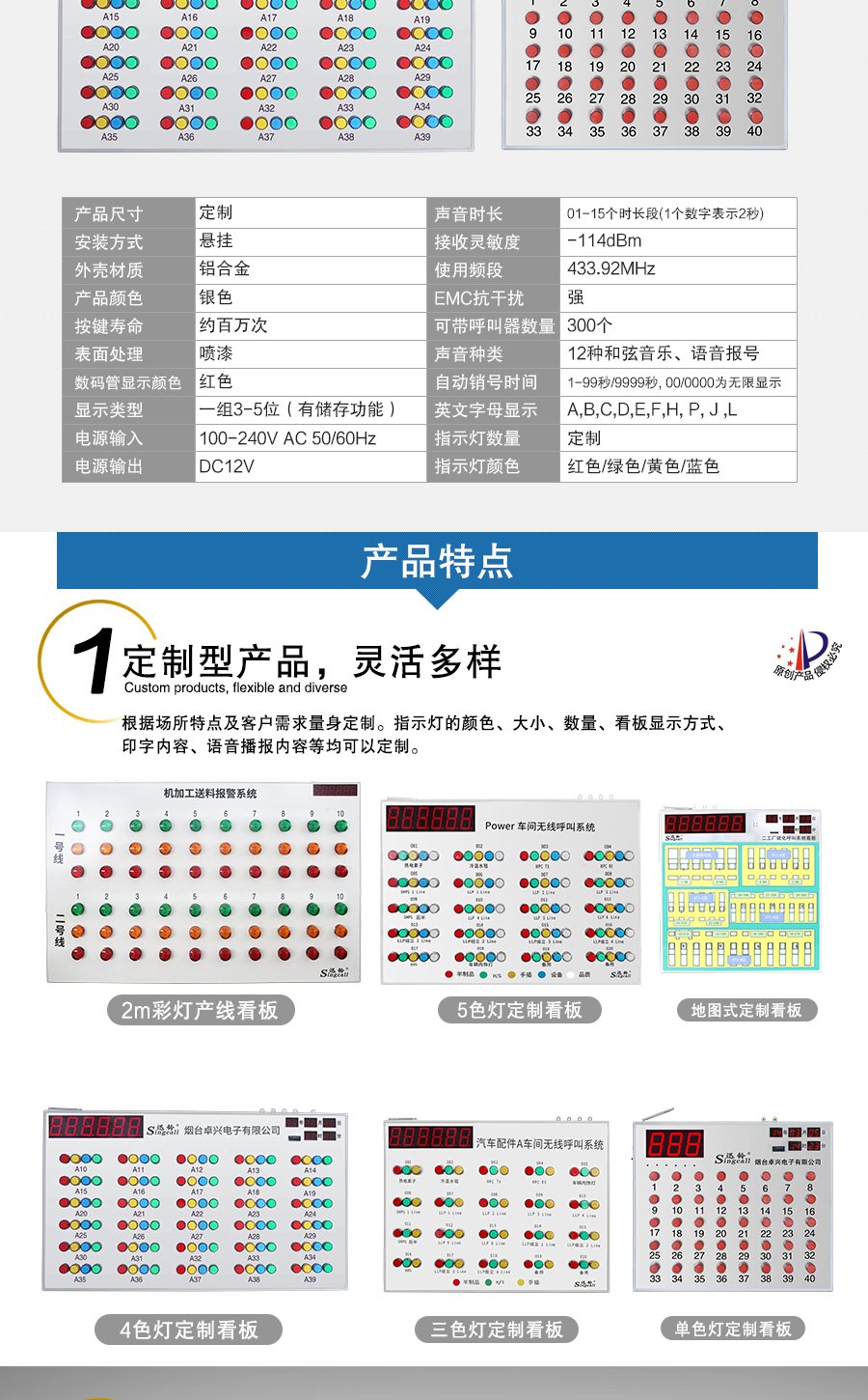 作用用途:接收車間流水線呼叫信息的帶燈顯示看板