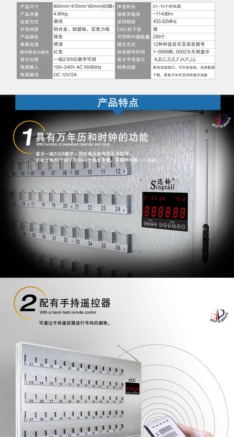 作用用途:醫(yī)院病房等場所護(hù)理人員接收病患呼叫信息的接收端